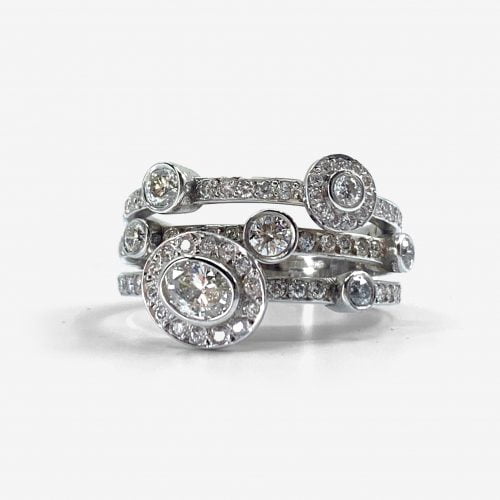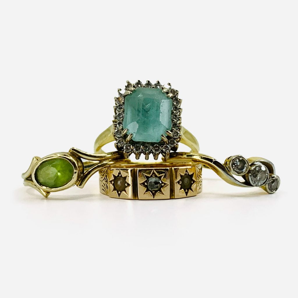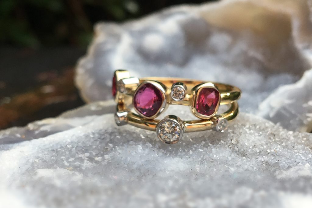 Four beautiful stacking rings made from our customer’s old and unworn gold and diamonds.